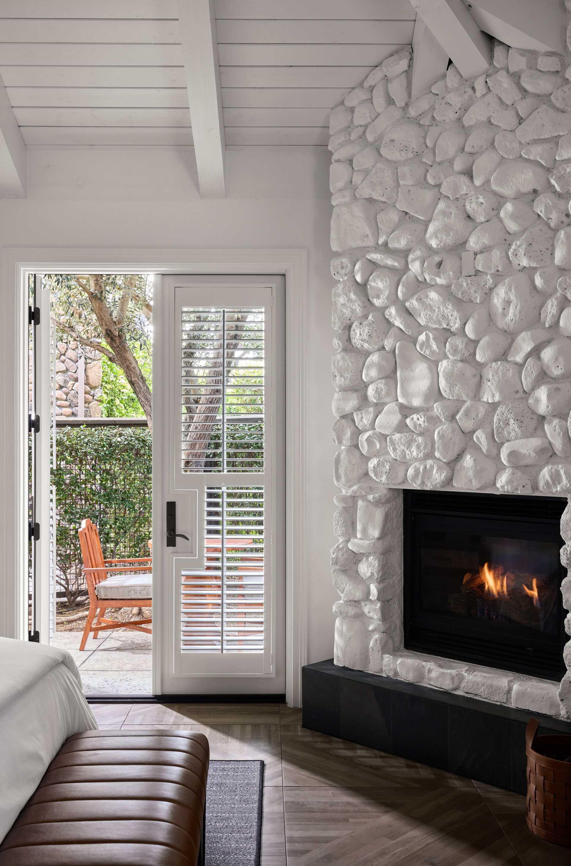 Indulge in unparalleled luxury in our newly renovated Yountville Suite, our most exclusive accommodation, spanning an impressive 1,100 square feet with wood flooring and vaulted ceilings. The bedroom is thoughtfully separated from the living room, offering enhanced privacy, and includes one and a half baths. Relax on one of two outdoor patios or retreat into the embrace of signature bedding and a soft down duvet. The opulent bathroom features a large, two-person spa-tub and a free-standing rainfall and steam shower, accompanied by plush bathrobes and slippers. Evenings are best enjoyed by the fieldstone fireplace with a drink from the wet bar or with a cup of freshly brewed coffee or tea. This exceptional suite also provides complimentary Wi-Fi and premium channels on three 55-inch LCD televisions, ensuring you remain effortlessly connected.